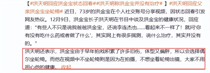 网友此前看到洪金宝坐轮椅出行,也多是因为要减轻膝盖受力,减缓疼痛。