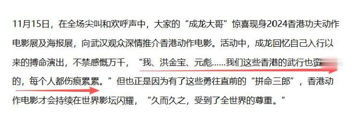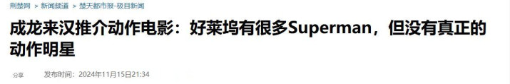 早在2024年11月,成龙在武汉参加香港功夫动作电影展及海报展时,就曾感慨道: