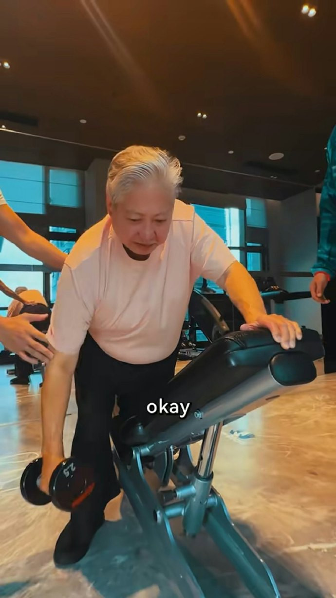 从洪金宝的社交平台上,也能看到儿子洪天明有时会陪他一起去健身房。