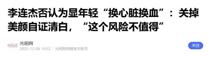 李连杰否认为显年轻“换心脏换血”:关掉美颜自证清白,“这个风险不值得”——光明网