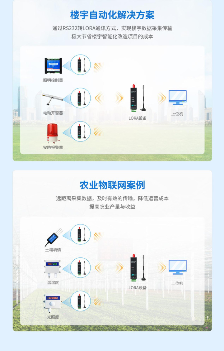 通过RS232转LORA通讯方式,实现楼宇数据采集传输极大节省楼宇智能化改造项目的成本。