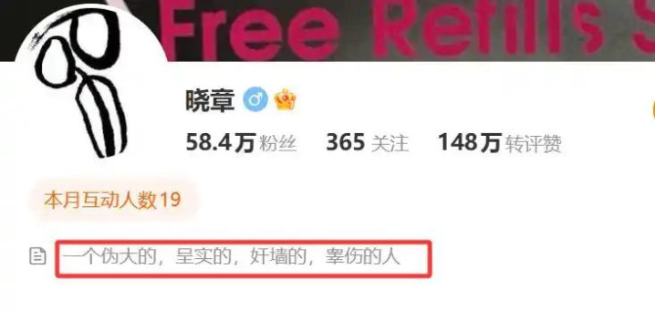 这是演员章宇在社交账号上给自己填写的简介,当时很多人都觉得,章宇的文化水平不过关,很多字都写成了错别字,比如伟大说成“伪大”、高尚说成“G伤”
