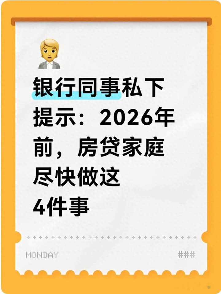 2025年12月,房贷市场政策红利进入集中兑现期,1%全国性房贷贴息、存量房贷自动降息、商转公流程简化、提前还款规则优化等政策密集落地。银行一线工作人员私下提示,2026年1月1日起多项福利将正式生效,趁年底窗口期做好这4件事,刚需家庭每月能省几百元,改善型家庭全年减负超1.3万元,最长贷款周期累计能省26万利息,这份实操攻略赶紧收藏转发。