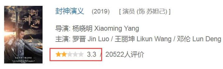 还有前几年的《封神演义》,她在剧中饰演的妖女妲己,更是被喷得体无完肤。